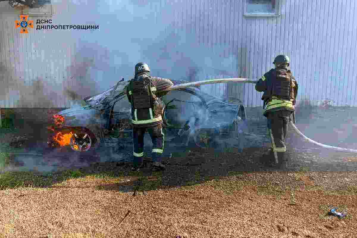 У Нікополі згоріла автівка внаслідок обстрілу 2 травня (фото)