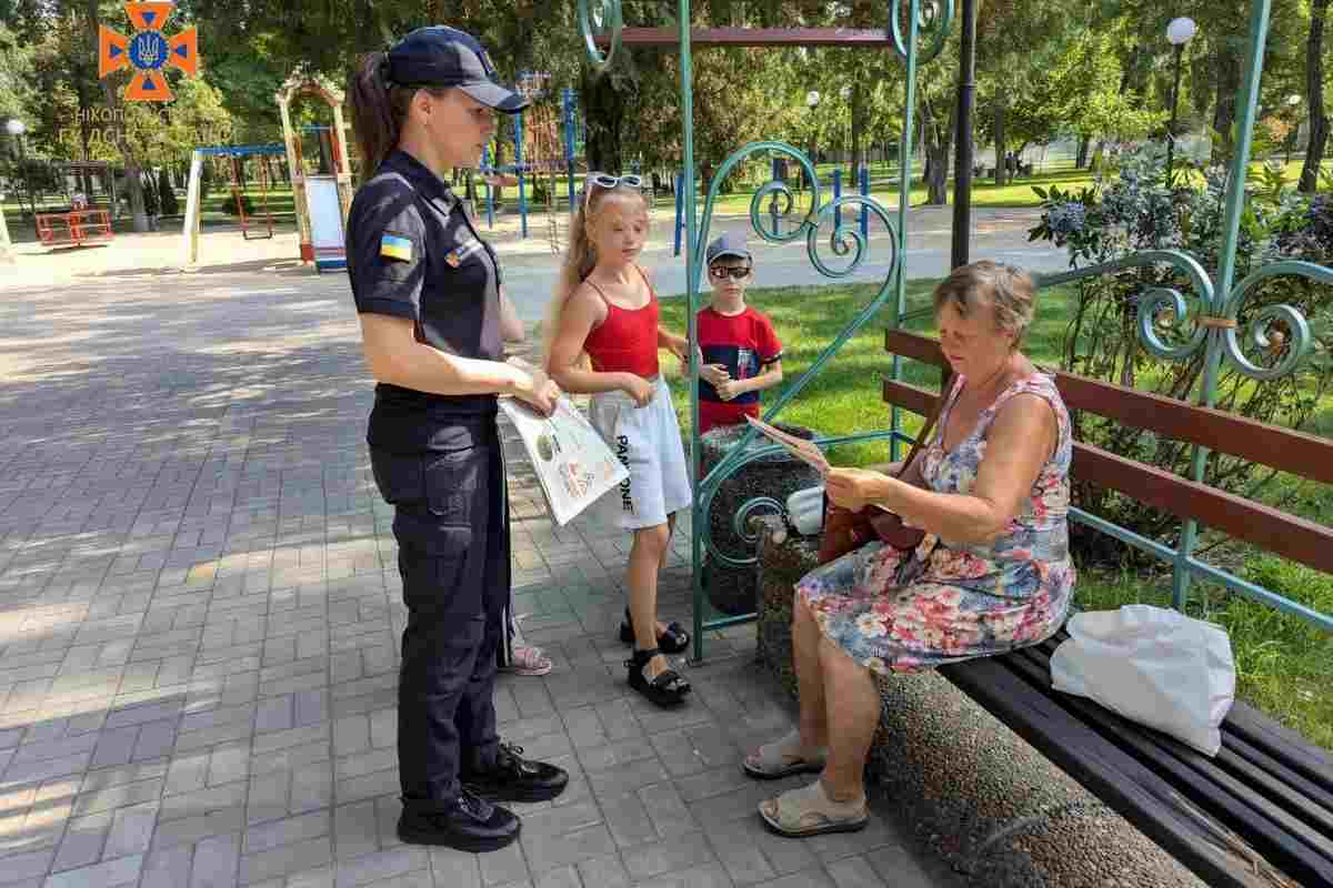 22 липня мешканцям Покрова нагадали правила безпеки дітей під час літніх канікул. Бесіди у парку провели рятувальники.