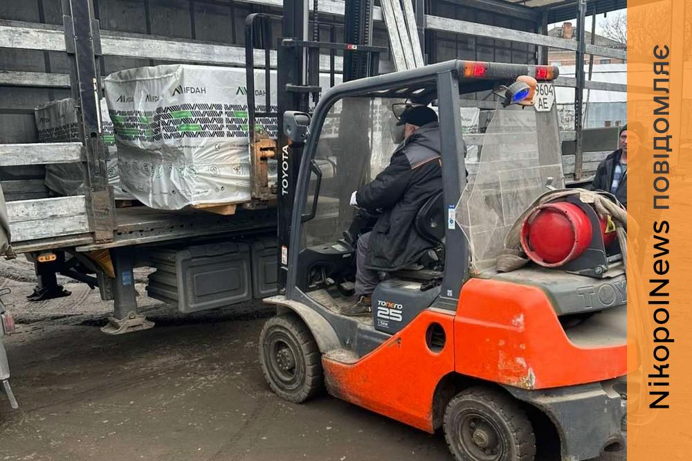 Днями Нікополь отримав шифер від Дніпро ОВА для ліквідації наслідків обстрілів.