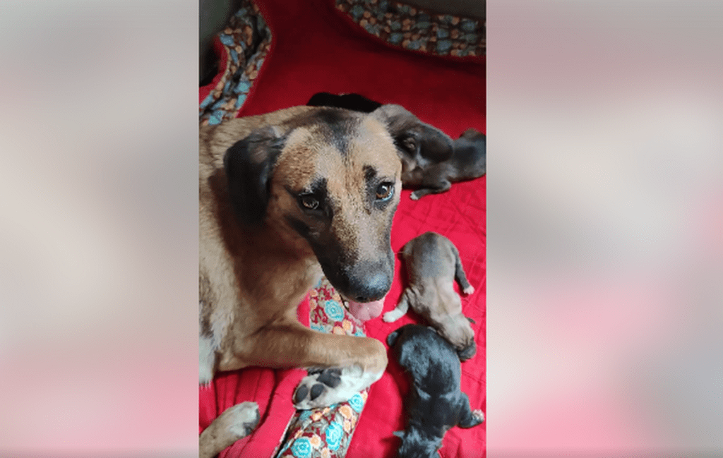 В ніч на 28 травня у Нікопольському притулку собака народила діток. Тривалий час вона жила на самому березі під обстрілами.