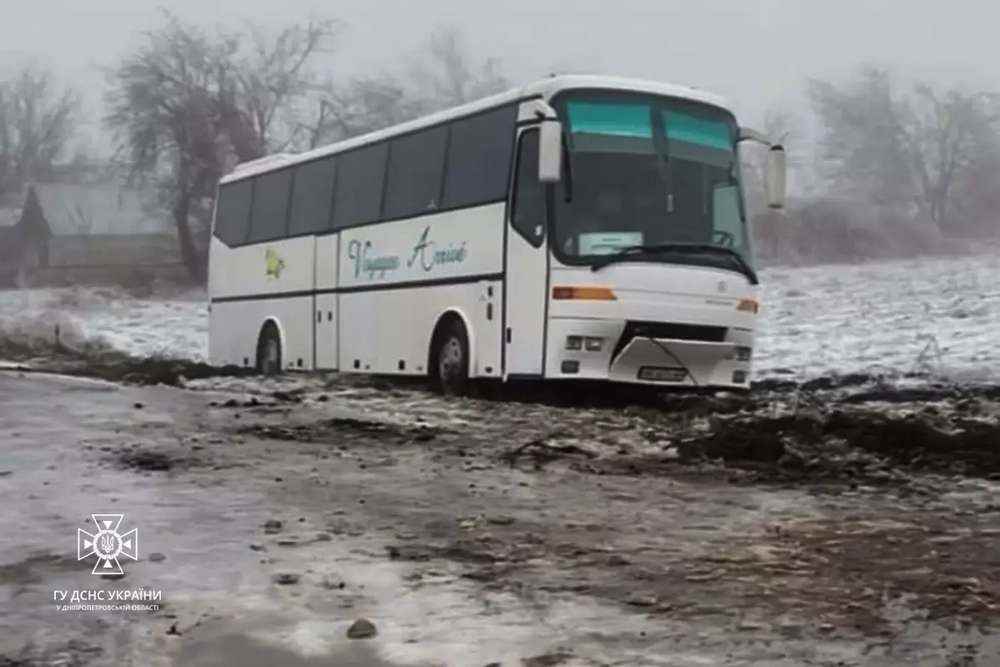 На Дніпропетровщині пасажирський автобус з’їхав у кювет і застряг. Про це повідомляють у ГУ ДСНС у Дніпропетровській області, передає Nikopolnews.